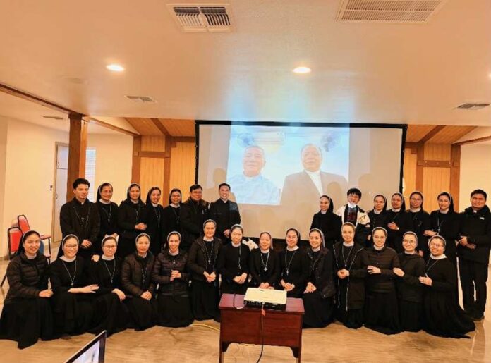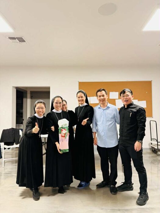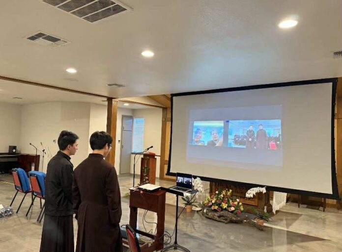 Cuộc gặp mặt diễn ra trong bầu khí gia đình, giản dị nhưng ấm cúng, nơi mỗi người mang theo niềm vui, trăn trở, và cả những thao thức âm thầm của đời sống ơn gọi tu trì nơi đất khách. Chính trong không gian ấy, sự hiện diện trực tuyến của Đức Giám mục Giáo phận Vinh Anphong Nguyễn Hữu Long và Đức Giám mục Phụ tá Phê-rô Nguyễn Văn Viên đã trở nên dấu chỉ sống động của sự hiệp thông vượt qua mọi khoảng cách địa lý. Dù không hiện diện cách thể lý, tiếng nói của vị chủ chăn giáo phận vẫn vang lên như một nhịp cầu nối kết Giáo phận mẹ với những người con đang ở phương xa.