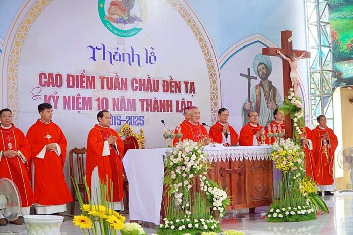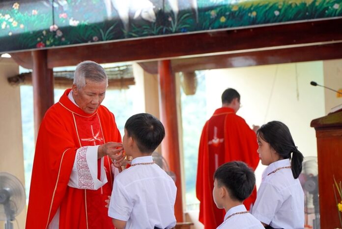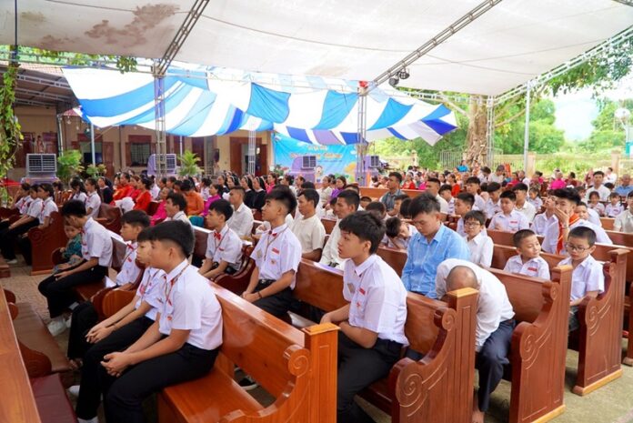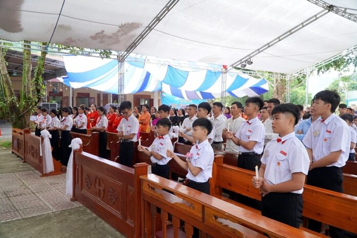 GPVO (24/08/2025) – Vào lúc 8 giờ sáng ngày 22/08/2025, Đức Giám mục giáo phận Anphong Nguyễn Hữu Long đã viếng thăm và cử hành thánh lễ khai mạc tam nhật cao điểm tuần chầu đền tạ Chúa Giêsu Thánh Thể của Giáo họ độc lập Con Cuông, đồng thời cử hành nghi thức ban bí tích Thêm Sức cho 16 thiếu niên của giáo họ. Đồng tế và hiệp dâng thánh lễ có cha quản nhiệm Gioan Nguyễn Ngọc Tú, quý cha trong và ngoài giáo hạt Dừa Lãng, quý tu sĩ cùng cộng đoàn dân Chúa.