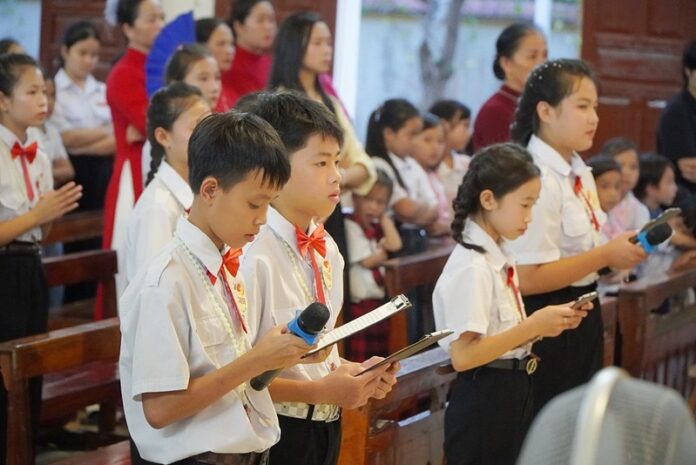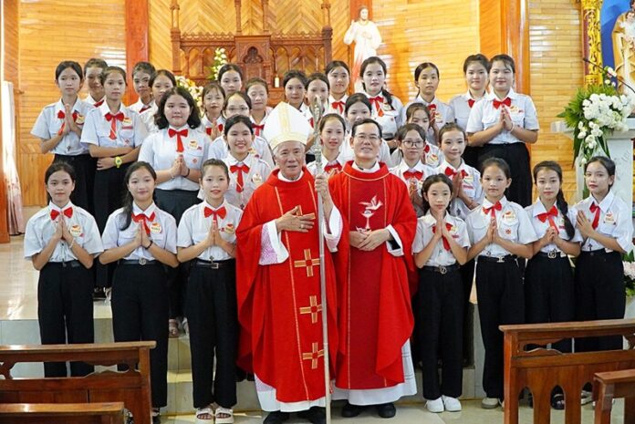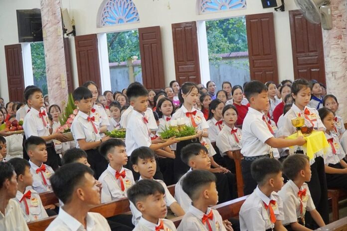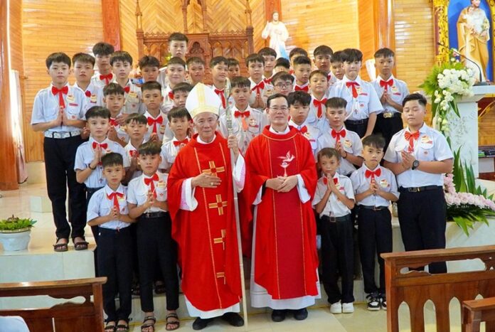 GPVO – Vào lúc 17 giờ ngày 20/08/2025, giáo xứ Yên Lĩnh vui mừng chào đón Đức Giám mục giáo phận Anphong Nguyễn Hữu Long viếng thăm và cử hành thánh lễ ban bí tích Thêm Sức cho 65 thiếu niên trong giáo xứ. Đồng tế và hiệp dâng thánh lễ có cha quản xứ G.B. Ngô Năng, quý tu sĩ cùng cộng đoàn dân Chúa.