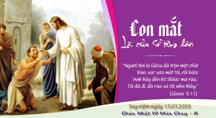 Hôm nay, Chúa Nhật thứ IV Mùa Chay, Giáo Hội đặt trước mắt chúng ta một câu chuyện vô cùng đặc biệt: Chúa Giêsu chữa lành cho một người mù từ thuở mới sinh. Chúng ta cùng bắt đầu bằng một hình dung nhỏ: Hãy thử nhắm mắt lại trong giây lát… Cảm giác đầu tiên là gì? Là bóng tối, là sự bất an, là thiếu định hướng, là mất cân bằng và có lẽ là một chút sợ hãi, phải không? Đó chính là thế giới thường nhật của những người khiếm thị. Một nỗi khổ thể lý mà có lẽ chúng ta, những người sáng mắt, khó có thể cảm nhận hết được.